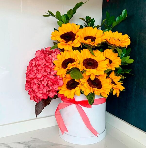 *CONTIENE: 09 GIRASOLES Y 01 HORTENSIA ROJA CON FINOS FOLLAJES VERDES
