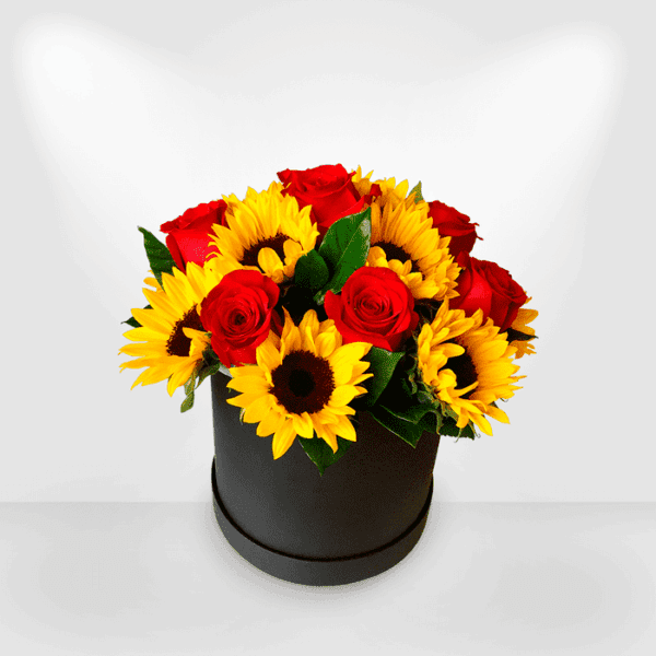 *CONTIENE: 04 GIRASOLES Y 06 ROSAS ROJAS CON FINOS FOLLAJES VERDES